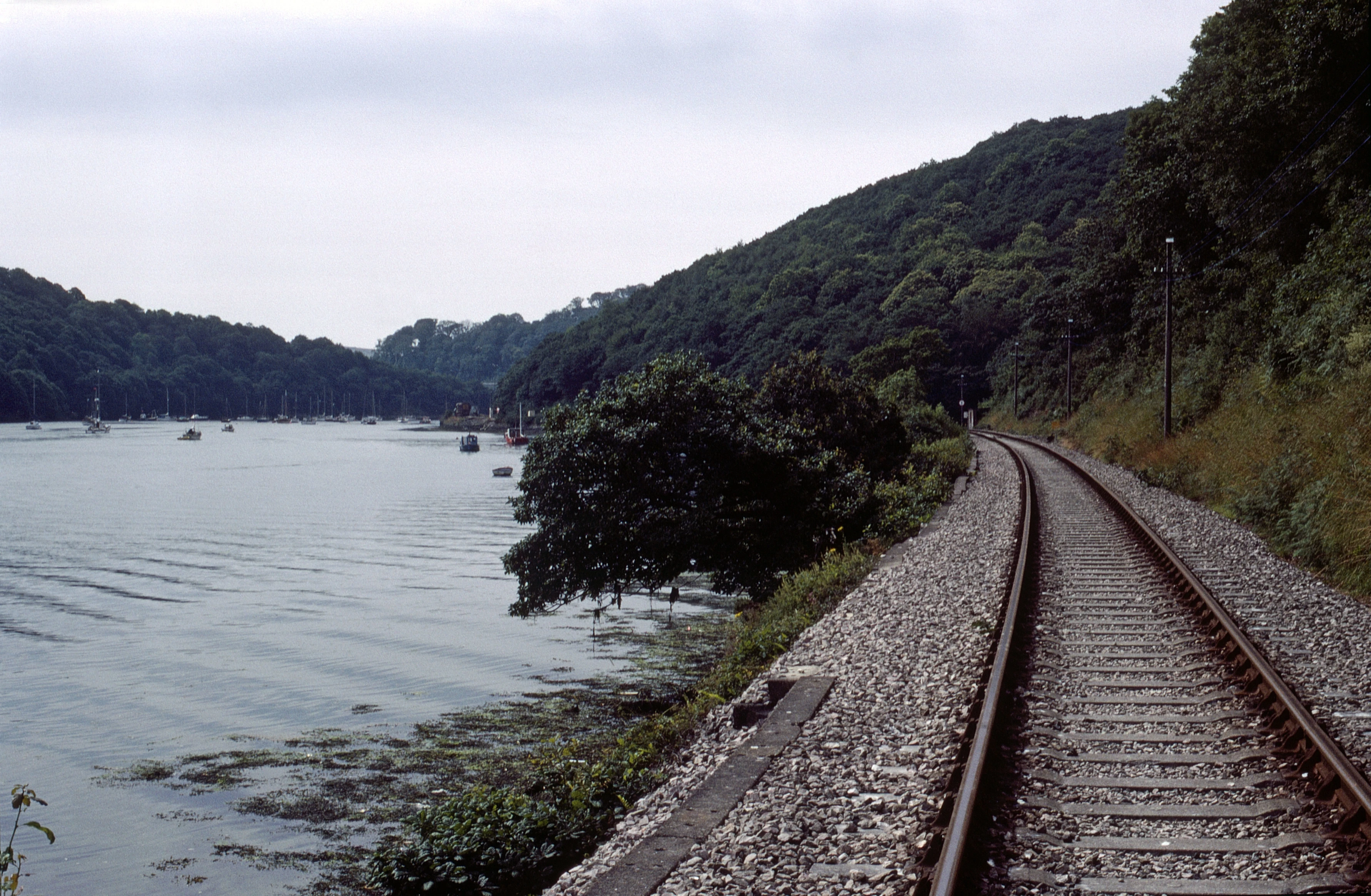 View of the railway line from the level crossing in Golant, looking towards Fowey