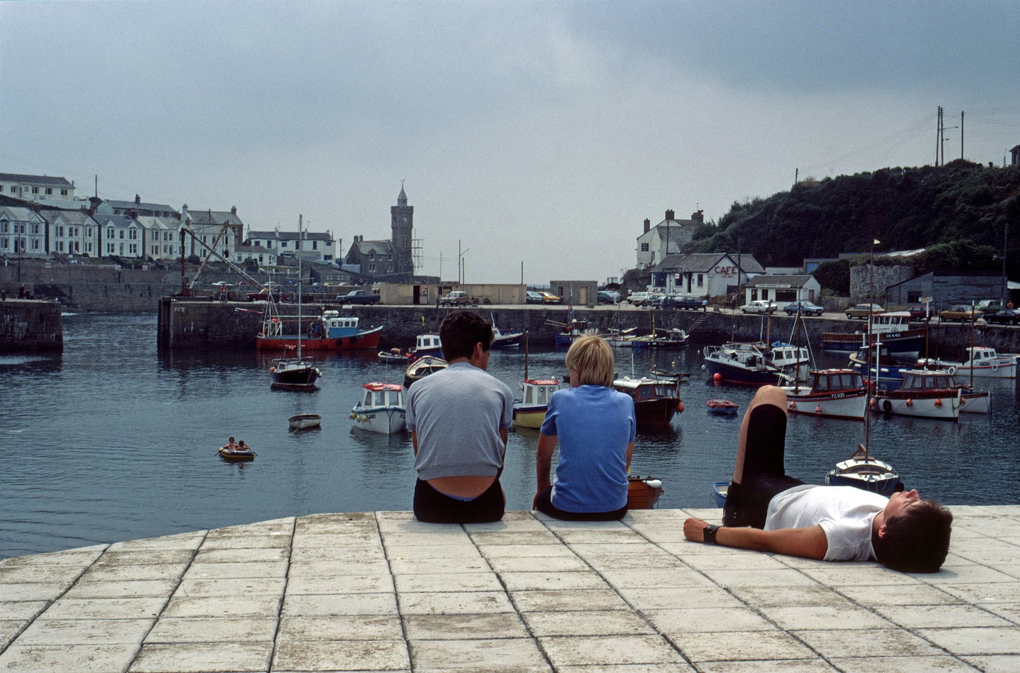 Duncan, Martin and Andrew relax at Porthleven harbour