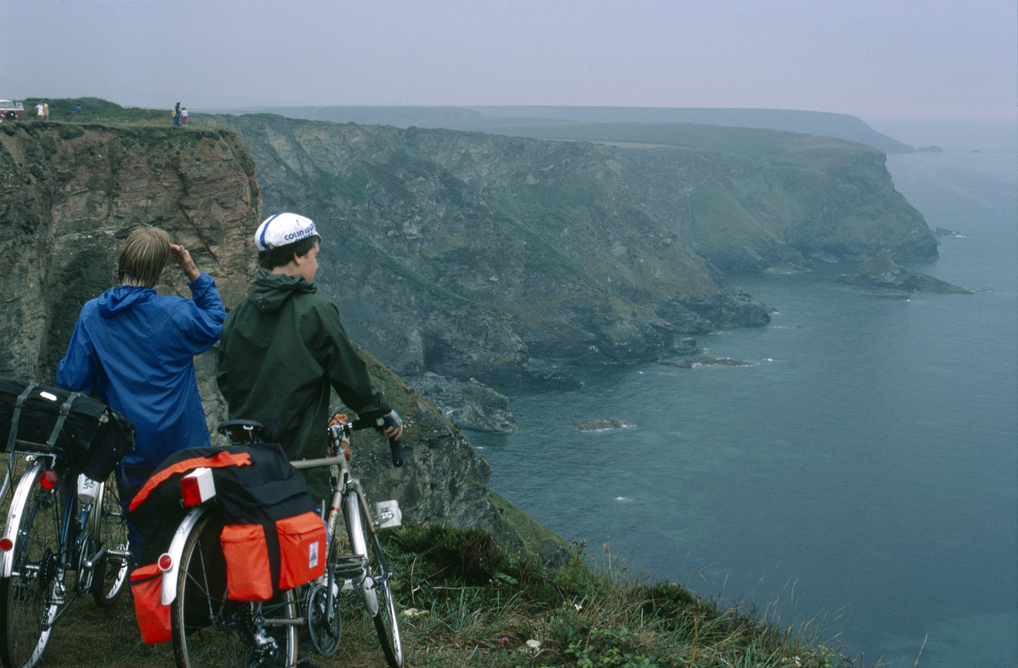 Martin Burrows and Steven Bowles admire the fabulous coastal scenery from North Cliffs, between Gwithian and Portreath, after the first rain of the tour. Visible are Deadman's Cove and Navax Point