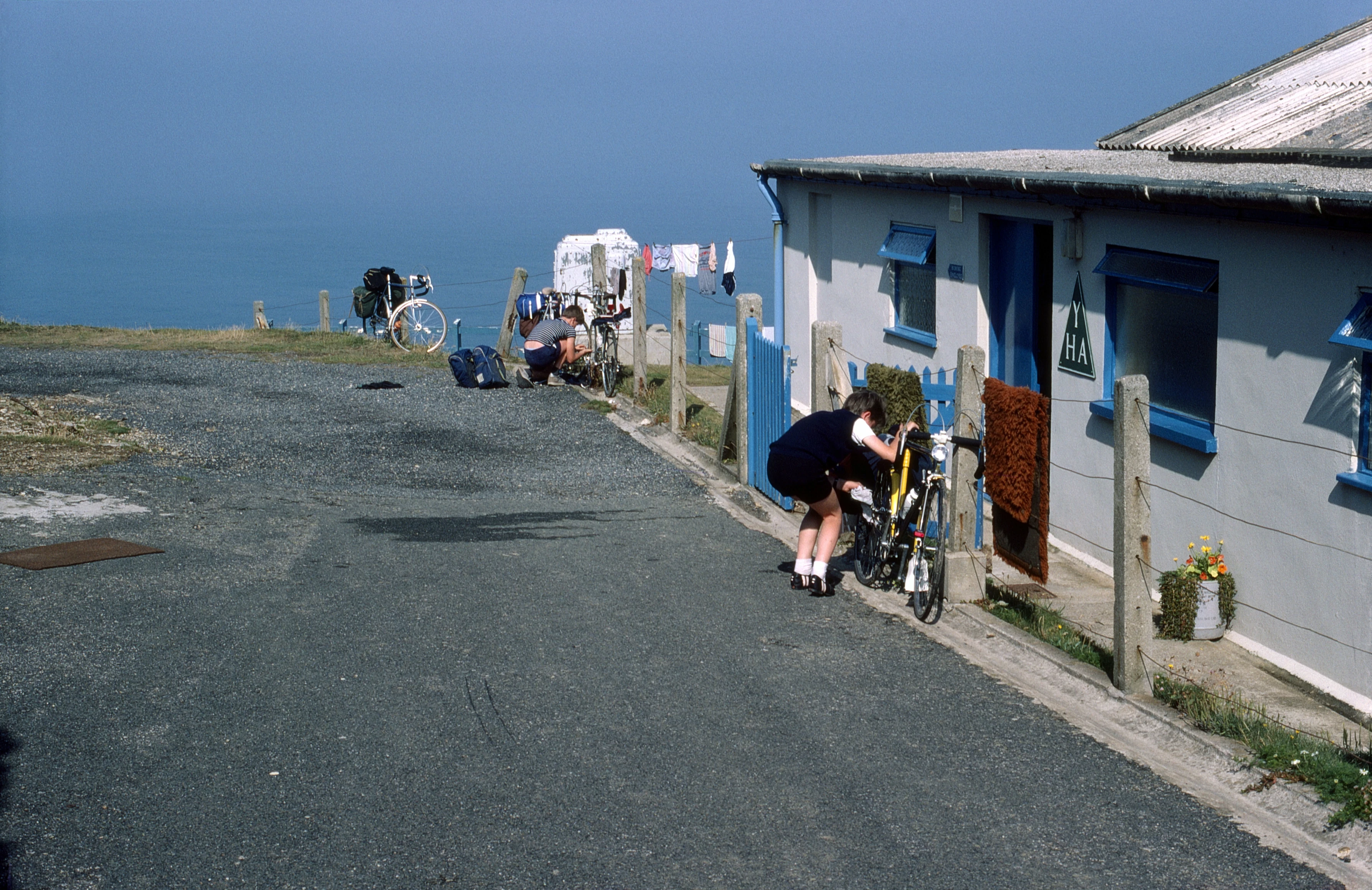Preparing to leave Perranporth youth hostel