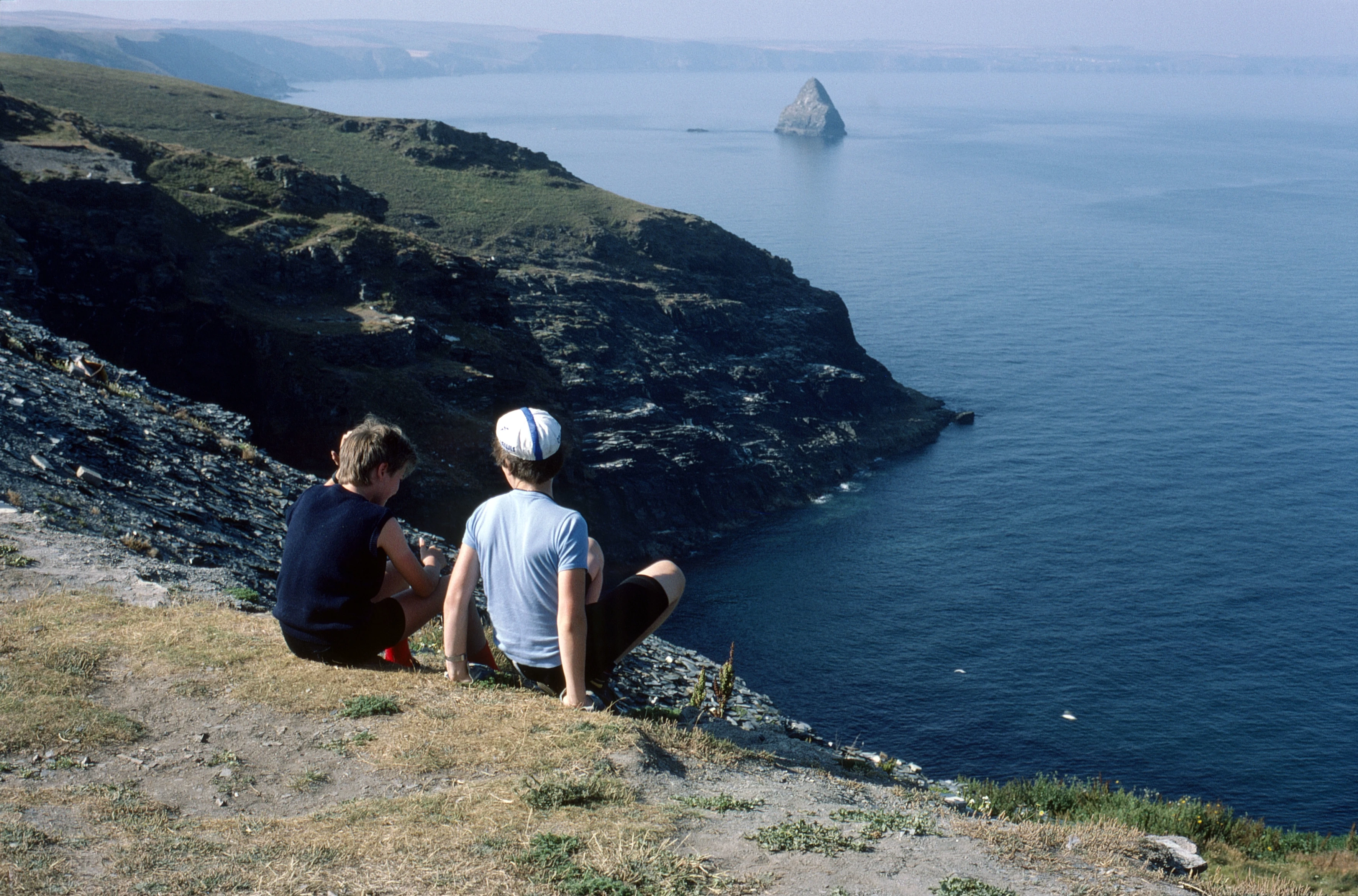Jamie Spence and Steven Bowles enjoy the fabulous views to Gull Rock from Tintagel youth hostel