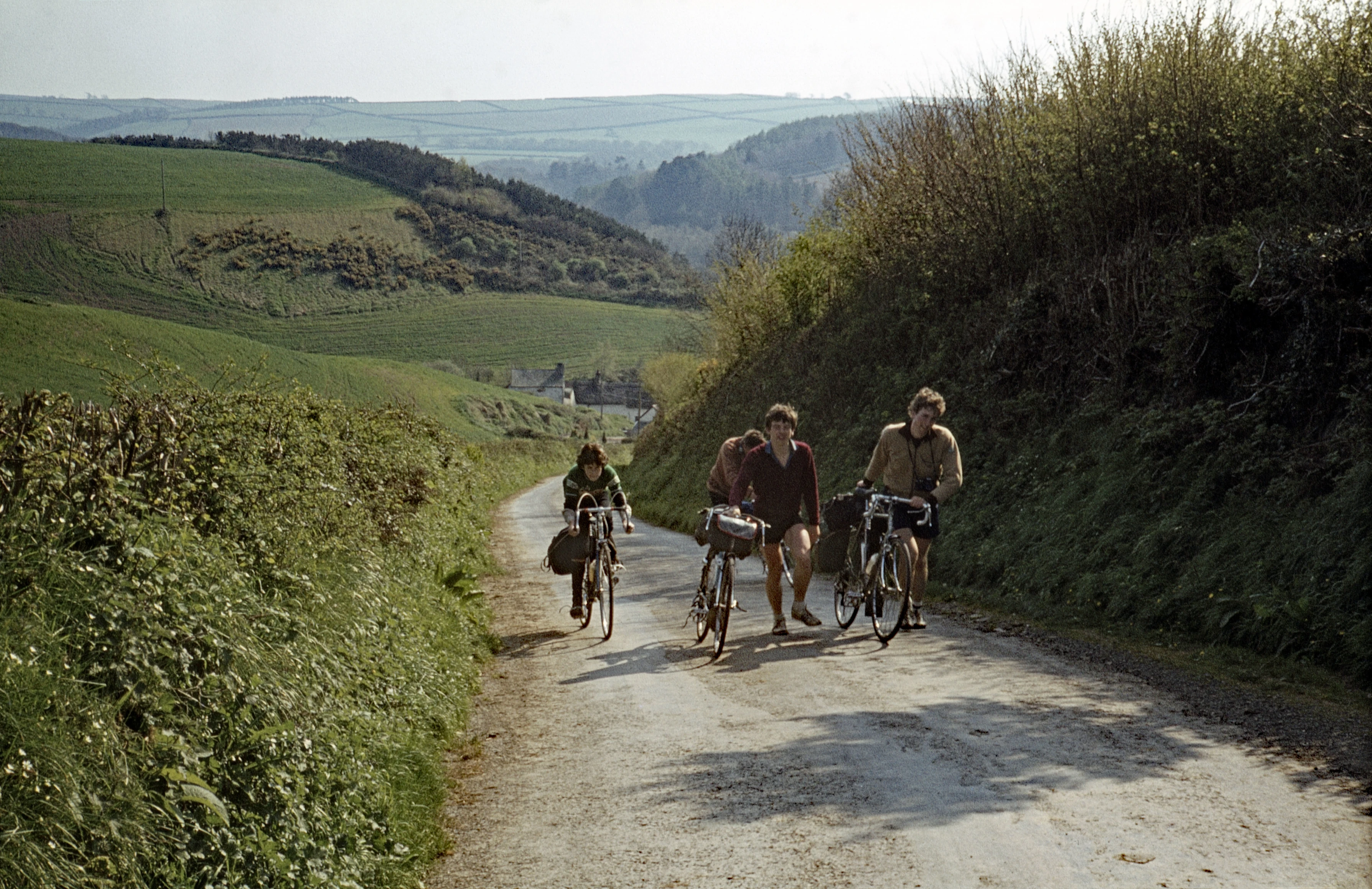 Mark, Don, Mike and Michael climbing the steep hill out of Weare Gifford (Photo: Colin Brierly)