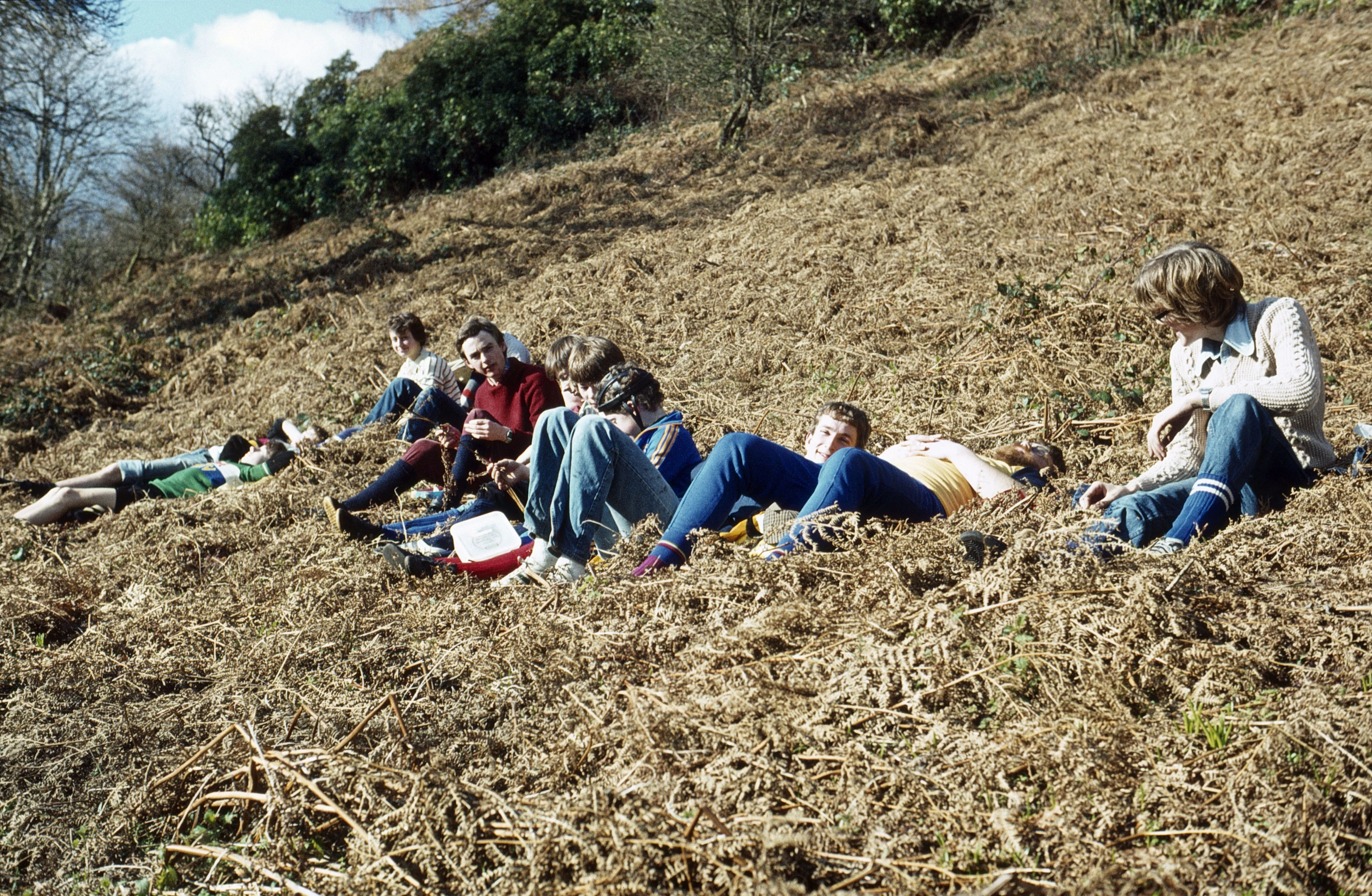 Lunch on a sunny bank just above Harcombe (Photo: Jean Brierly)