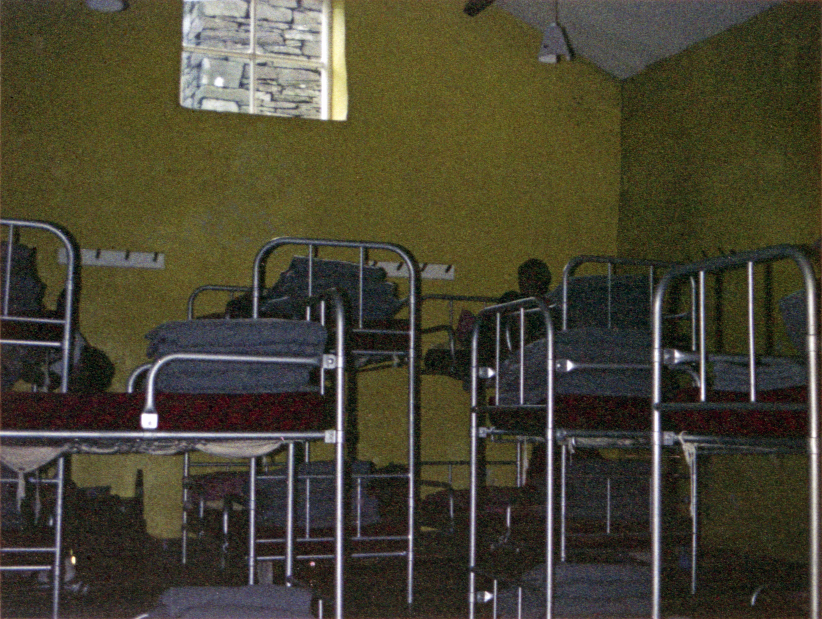 Our raised sleeping area in the annexe of Capel-y-Ffin Youth Hostel