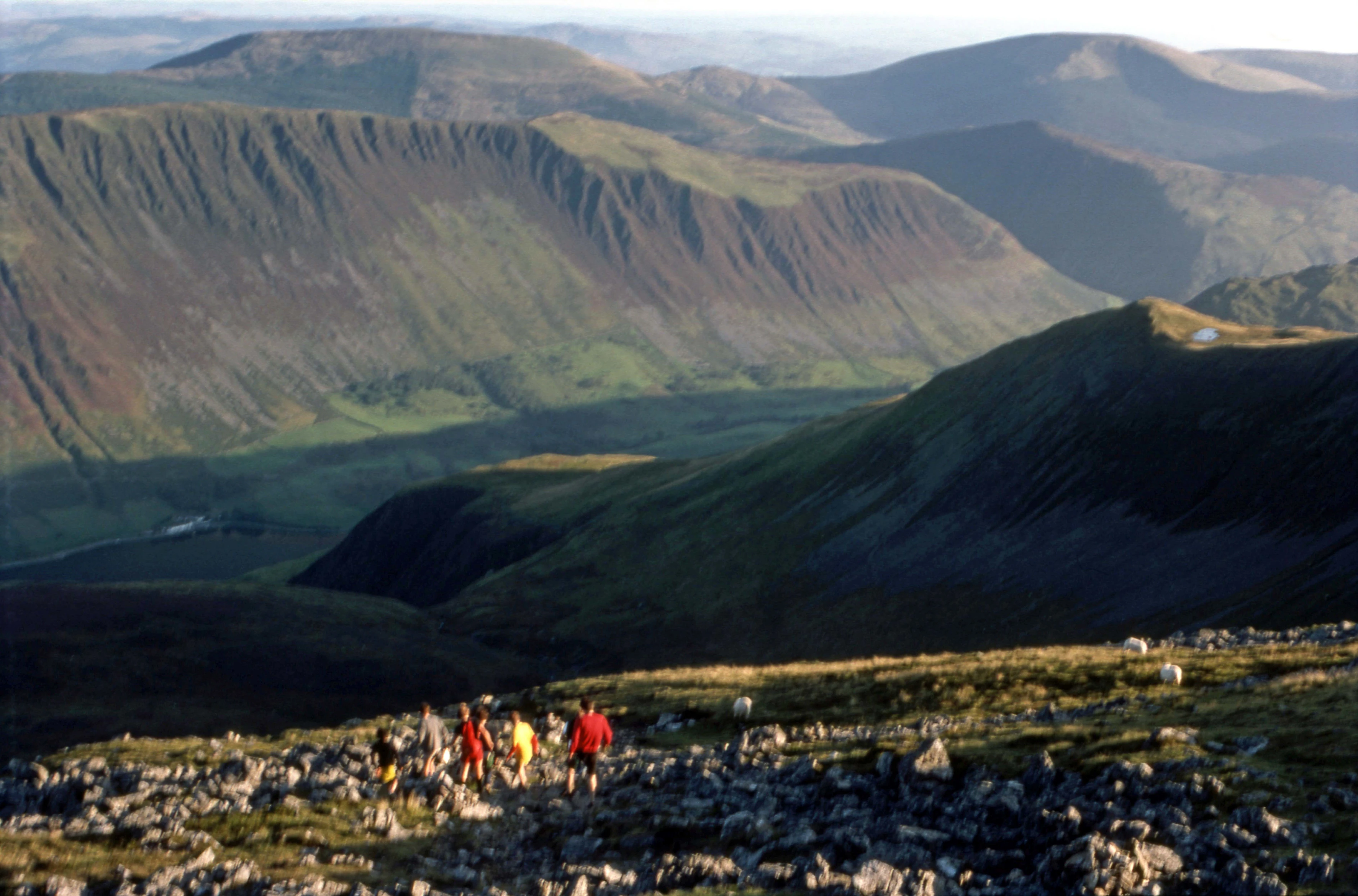 The long walk back to the bikes, with Lake Tal-y-Llyn below