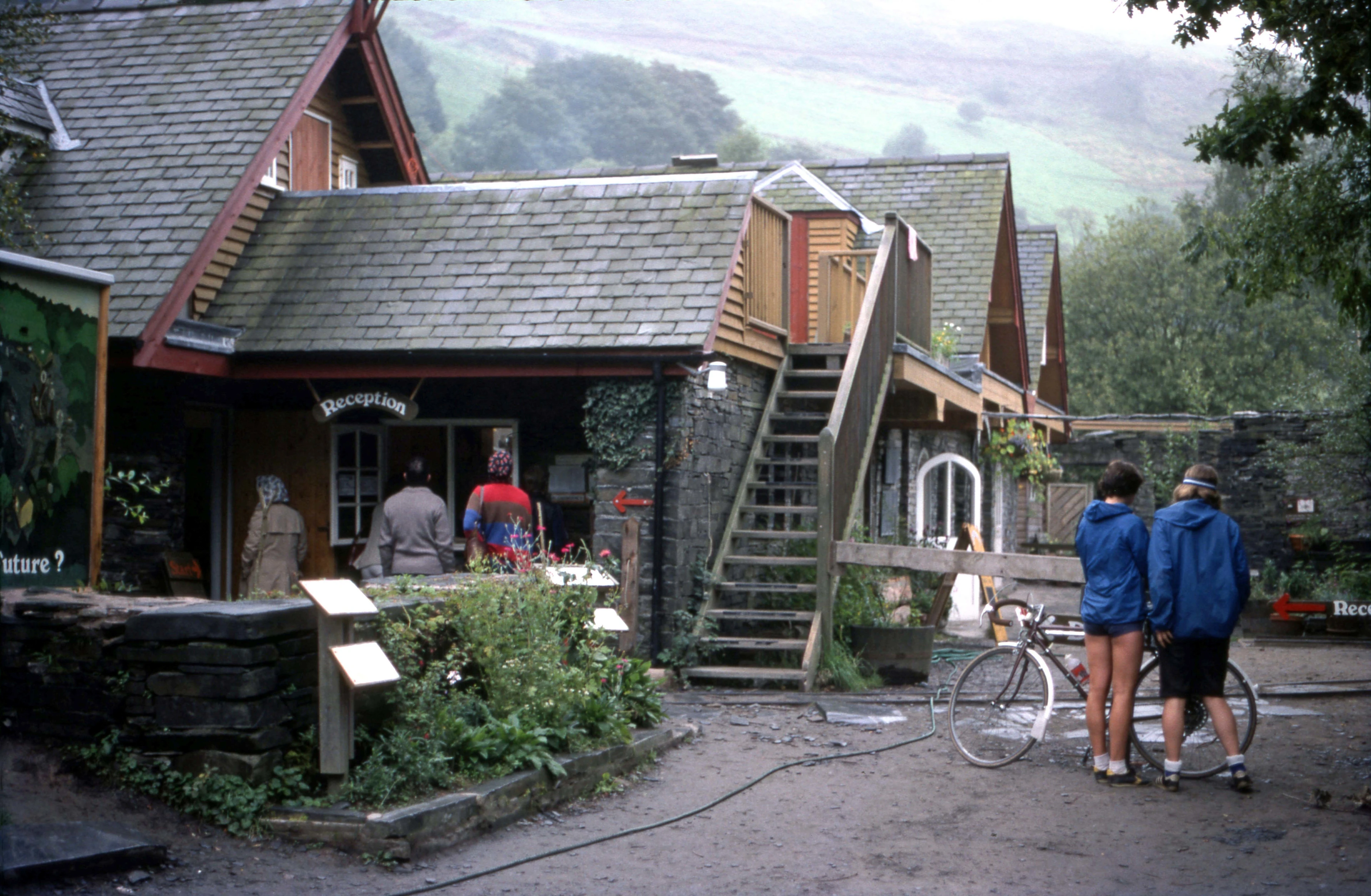 Frances and Jackie at the entrance to the Alternative Energy Centre at Machynlleth