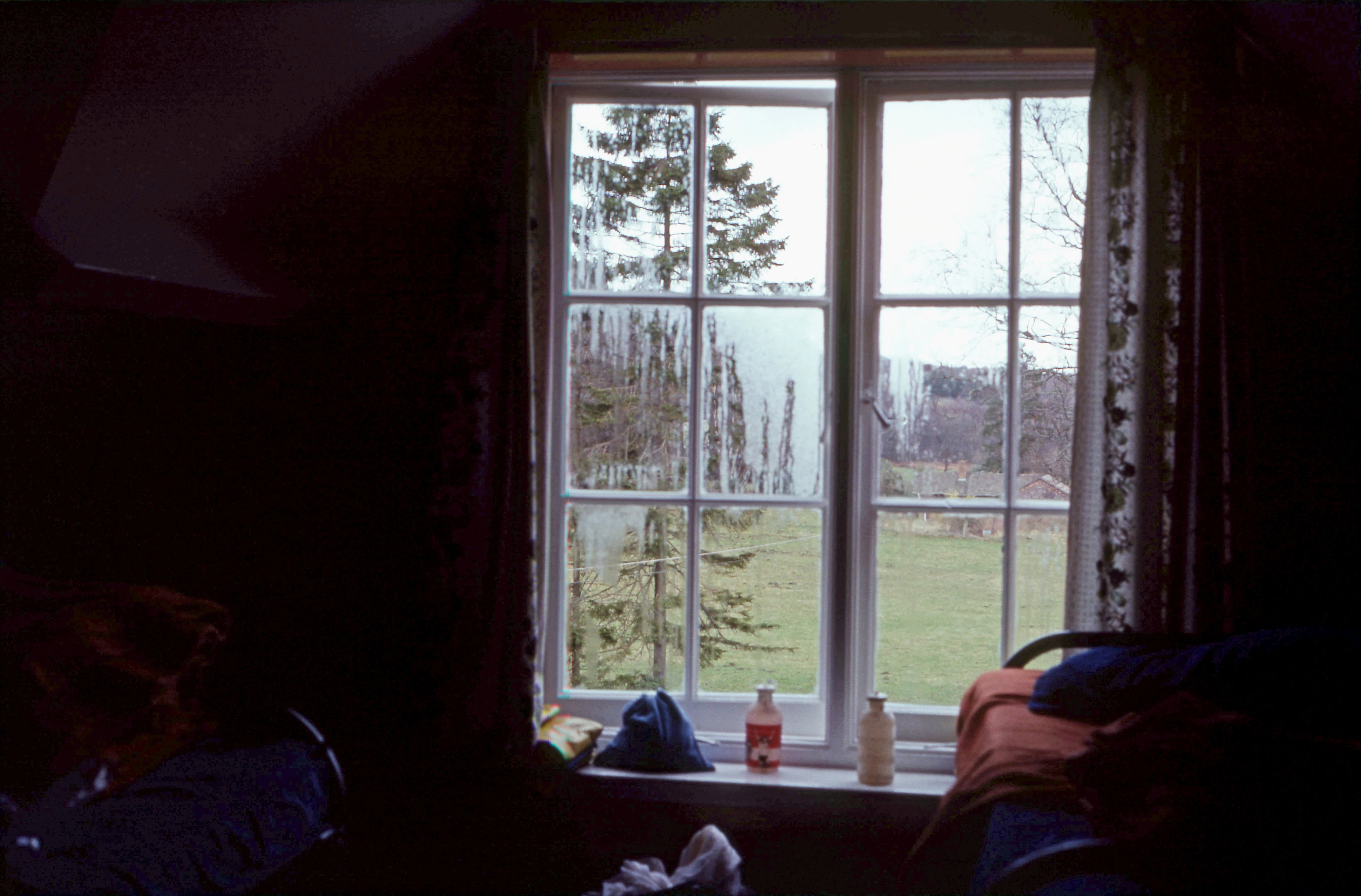 View into the grounds from our dorm window at Crowcombe Heathfield youth hostel