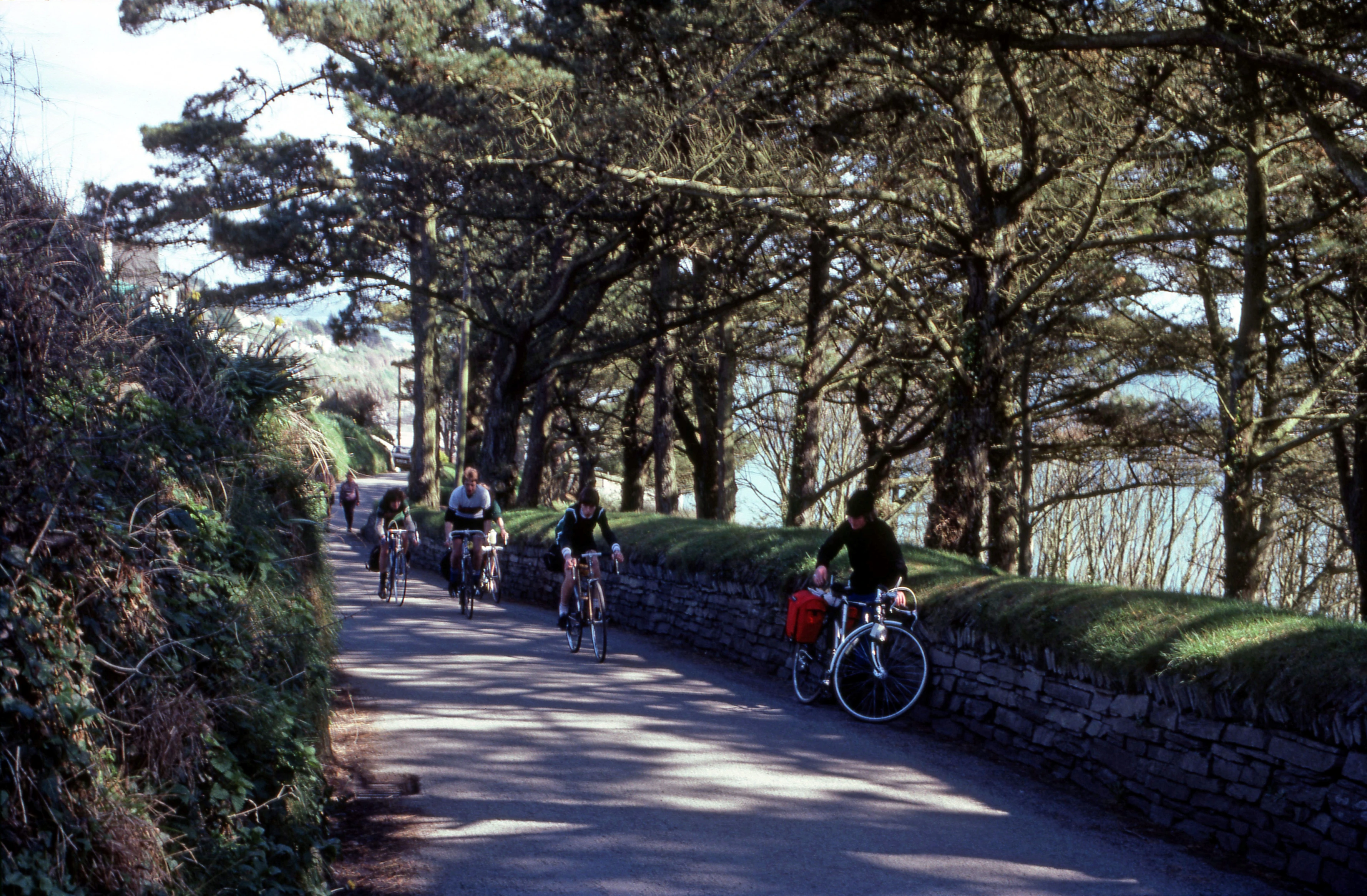 Mark, Kevin, Nigel and Val climbing the hill from Seaton towards the Monkey Sanctuary
