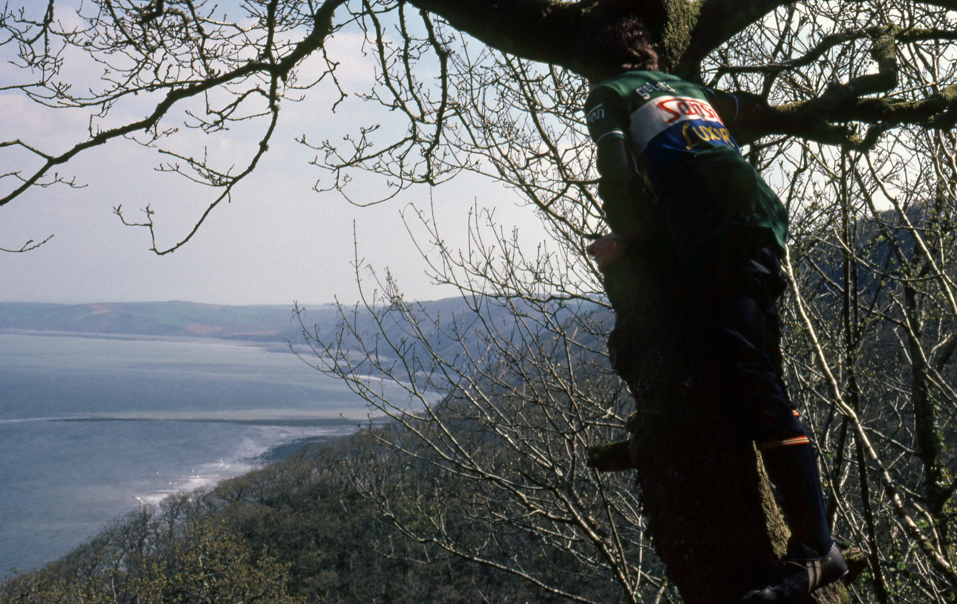 Mark Morton living dangerously to get a better view on the Hobby Drive