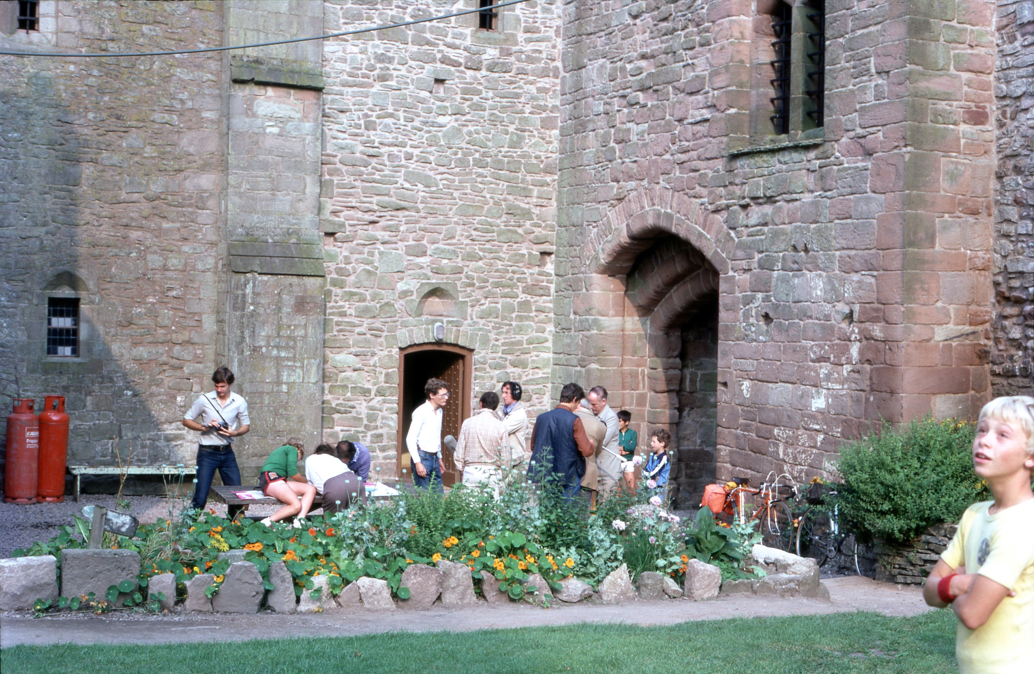 Matt and others in the courtyard of St Briavels Castle youth hostel