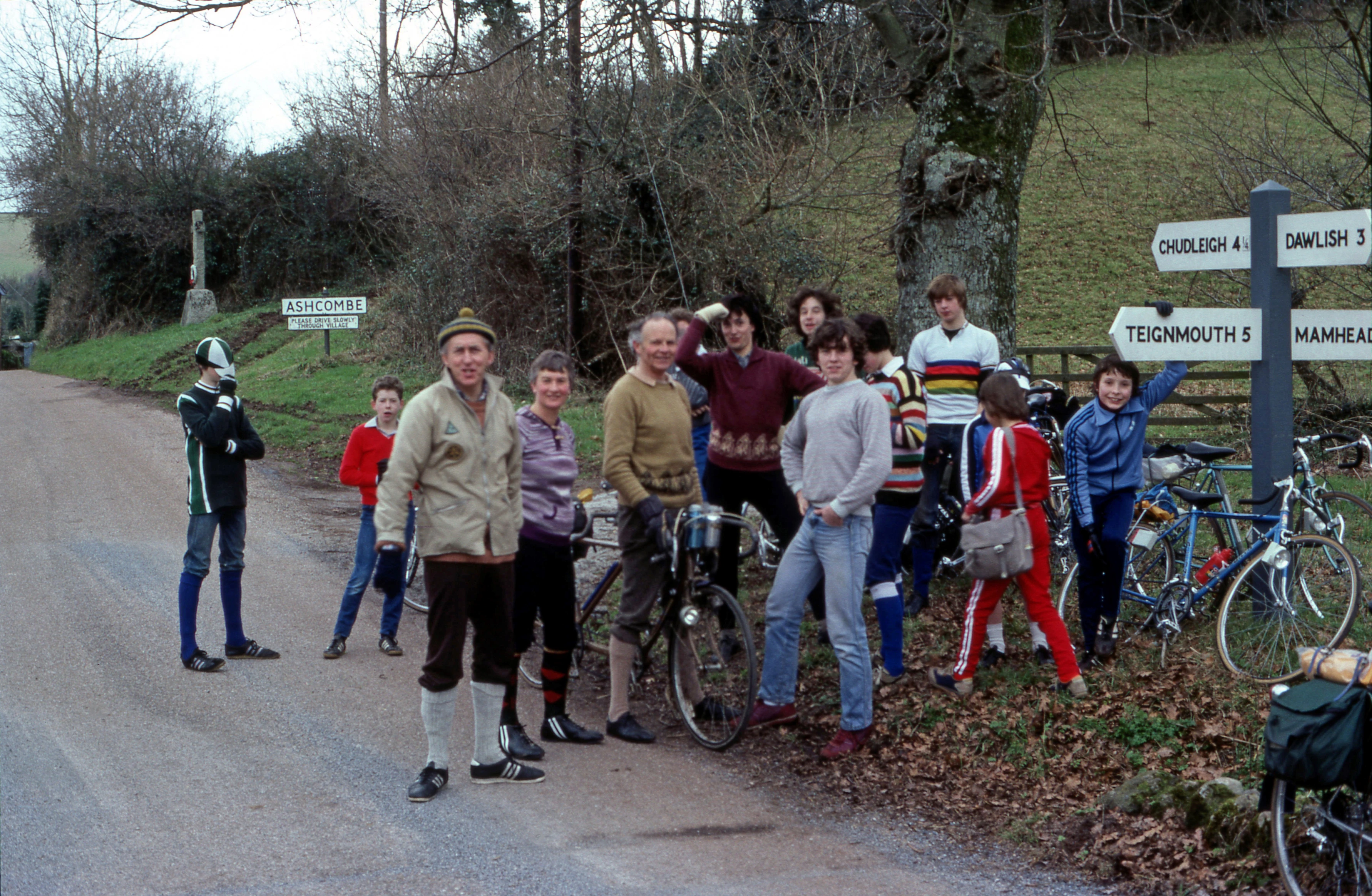 We met up with three members near the war memorial before Langdon Barton, Ashcombe. Left to right: Nigel, Andrew, Don, Jean, Colin, Rob, Mark, Mike, Frances, Kevin, Jason and Justin