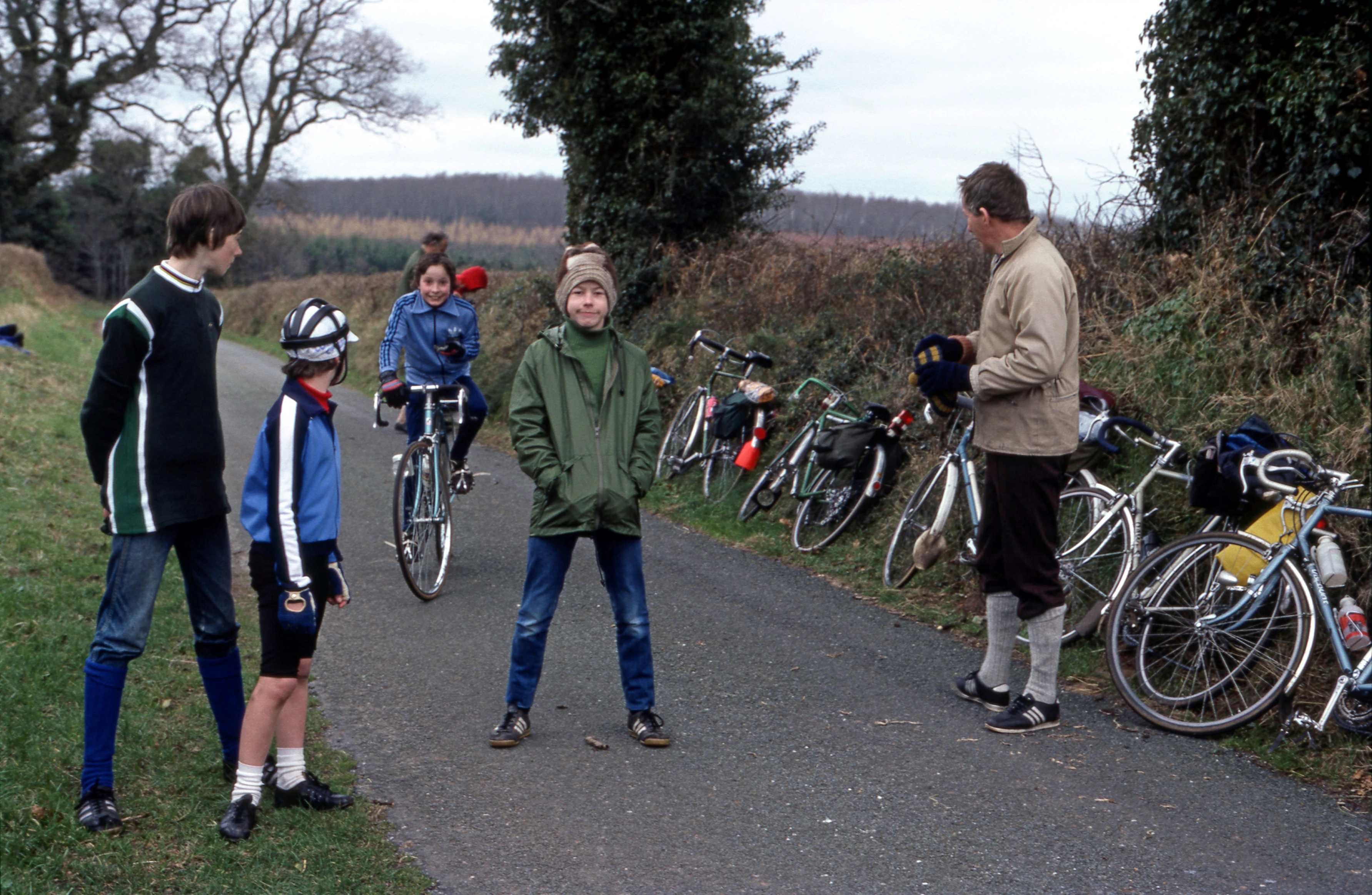 Andrew Winstanley takes centre stage near Wilsworthy Farm, Kenn, while Kevin's puncture is repaired