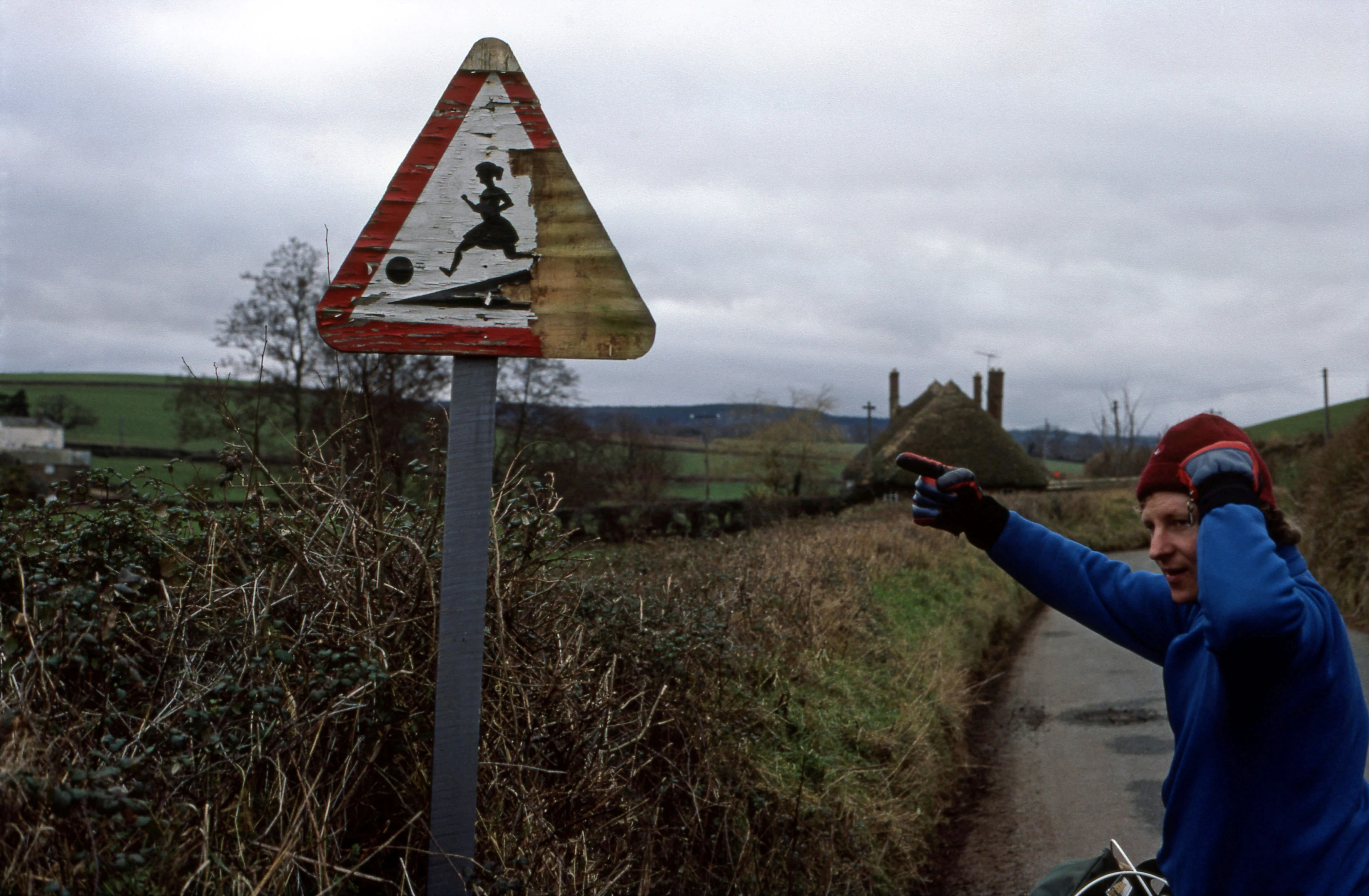 Paul Kerr and the very strange road sign near Pridhams, Kenn