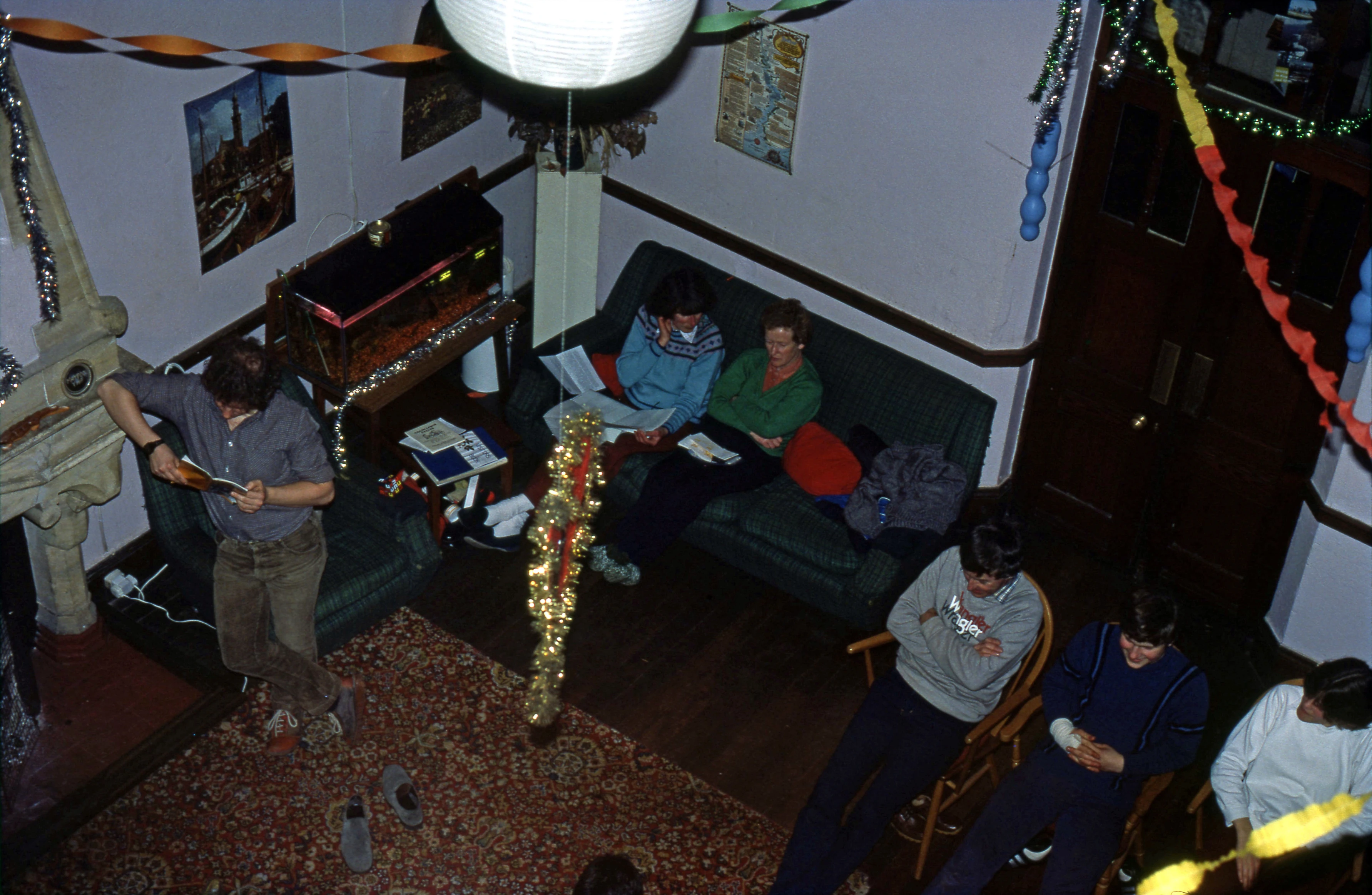 Iris Buckler, Jean Luxton, Don Hassall and others relax in the main hall at Maypool
