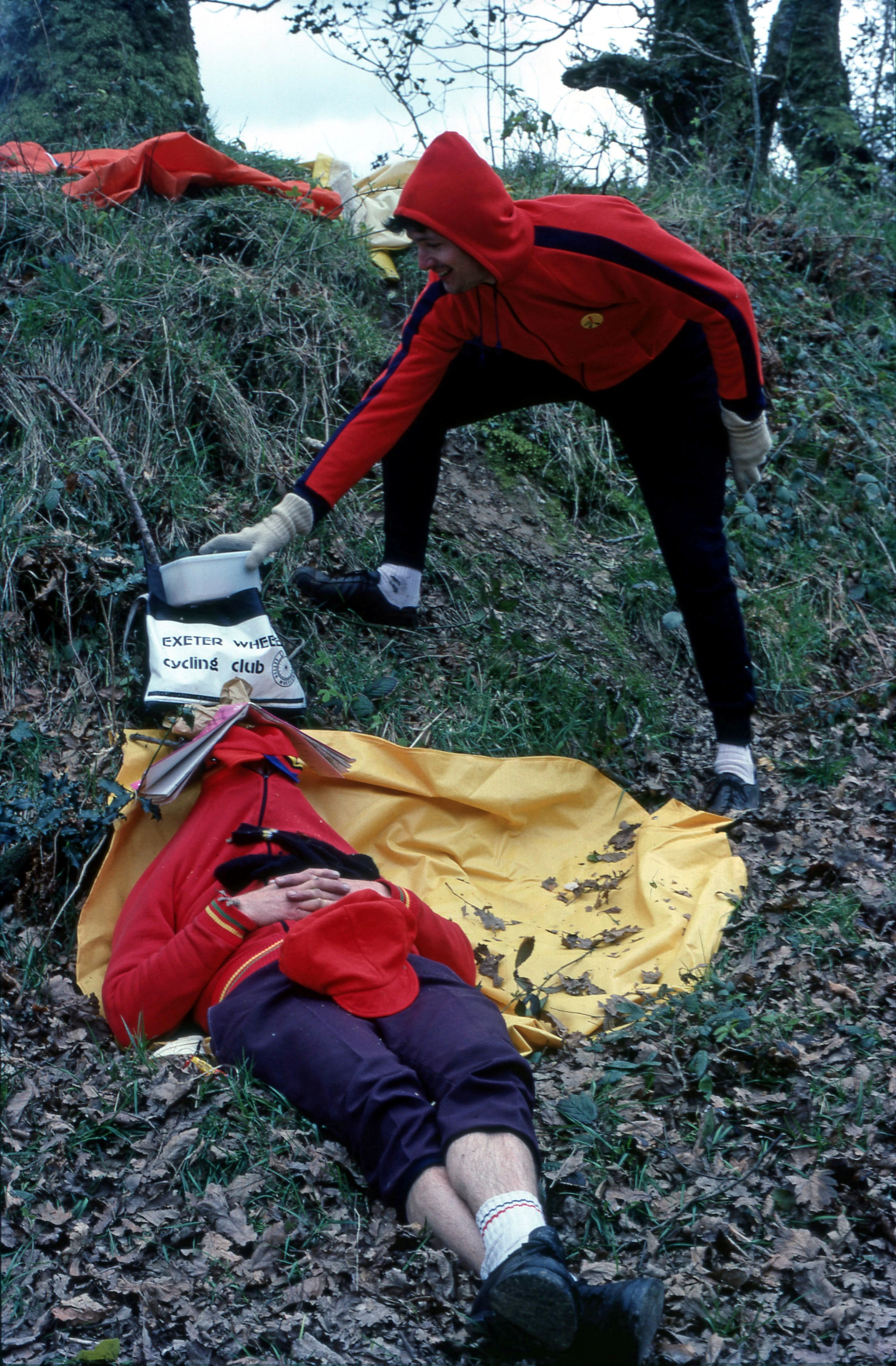 Rob Spence has fun while Pete Luxton tries to take a nap at the lunch spot near Newbridge Wood