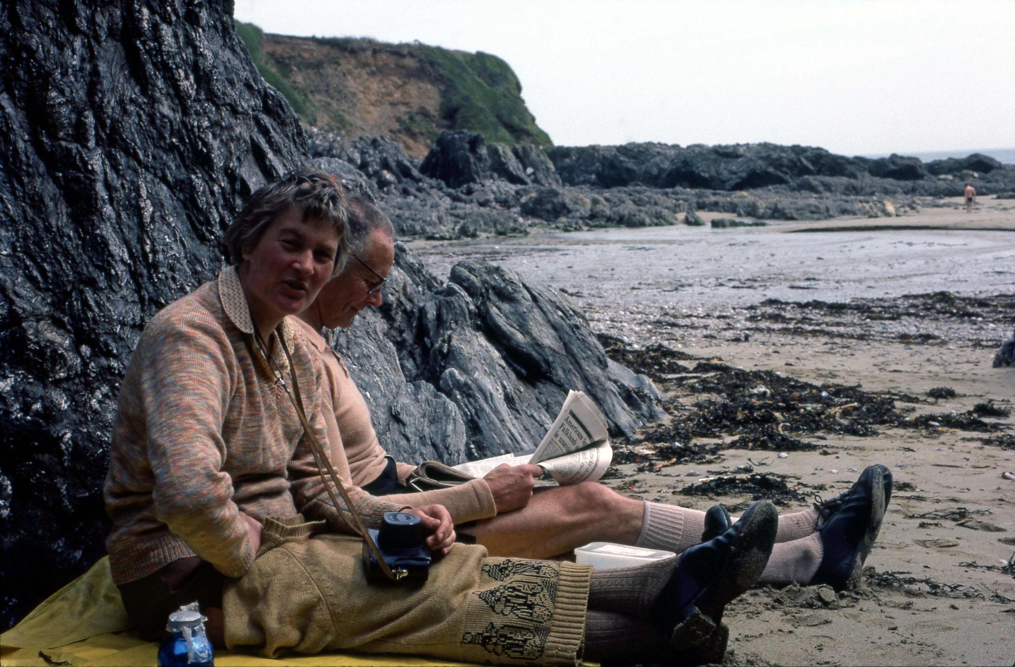 Jean and Colin Brierly relaxing after lunch at Lannacombe Beach
