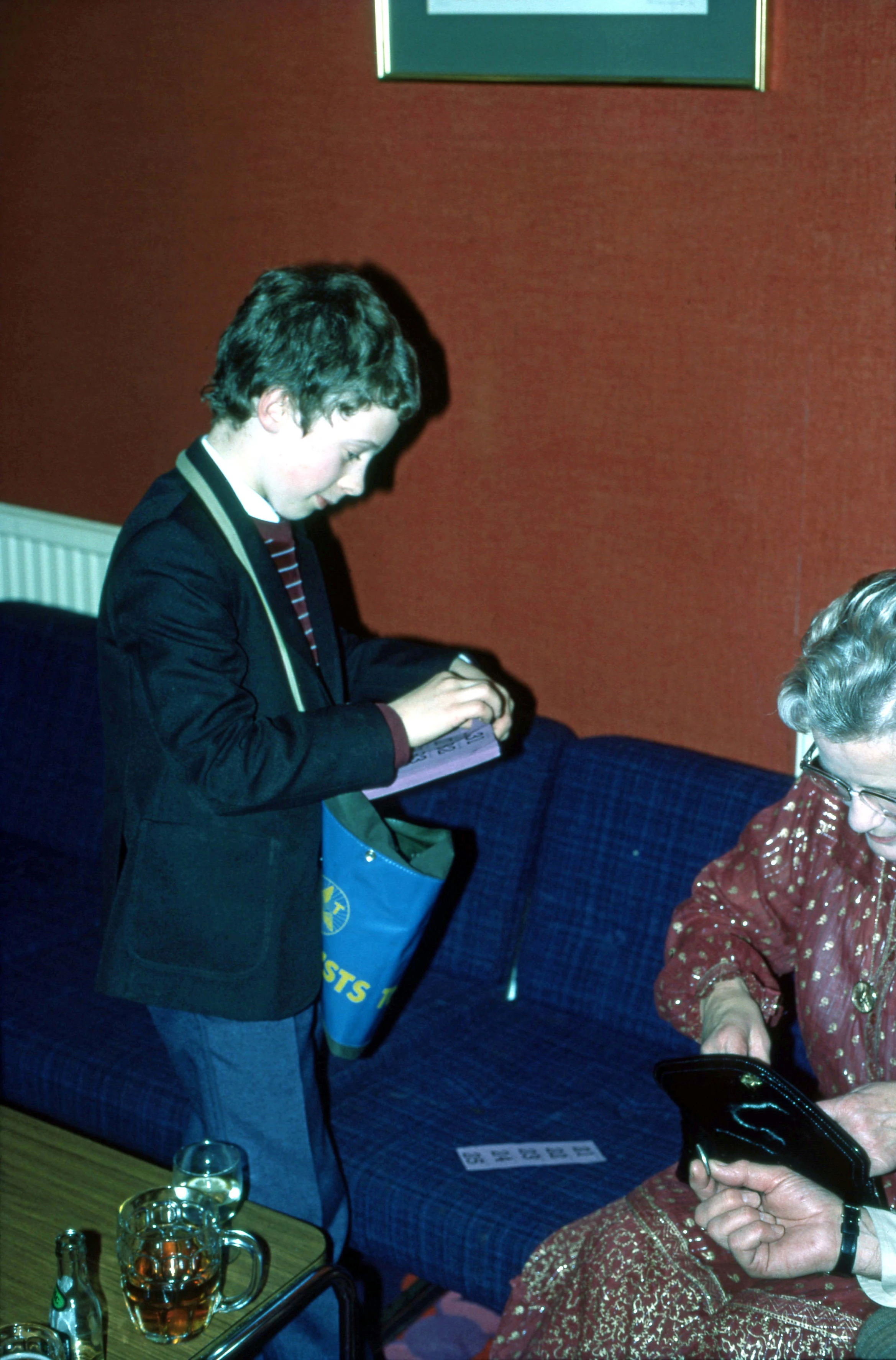 Glenn Powling sells raffle tickets to Ivy Thorpe