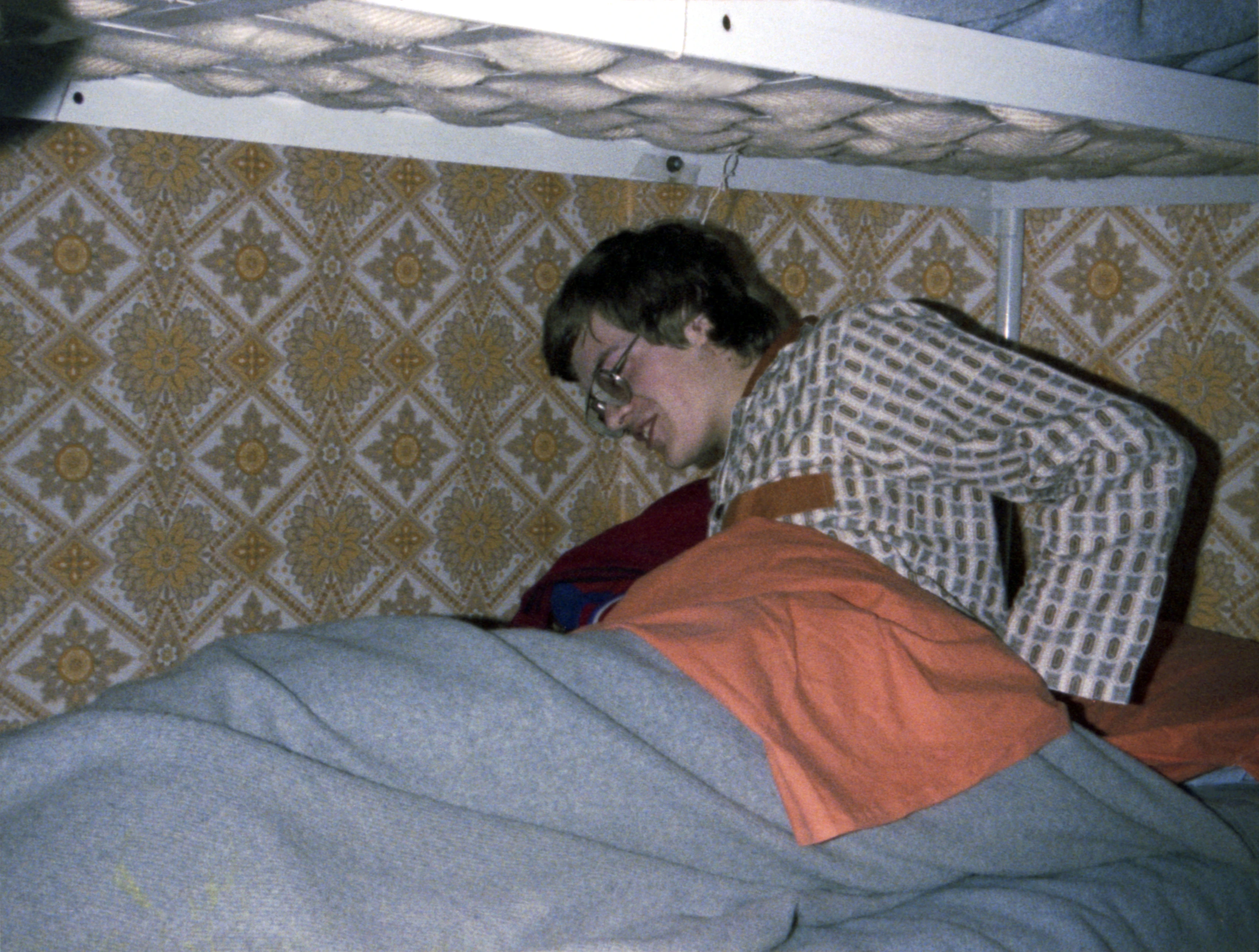 Philip has just found a knot in his sleeping bag. "Peasants!"