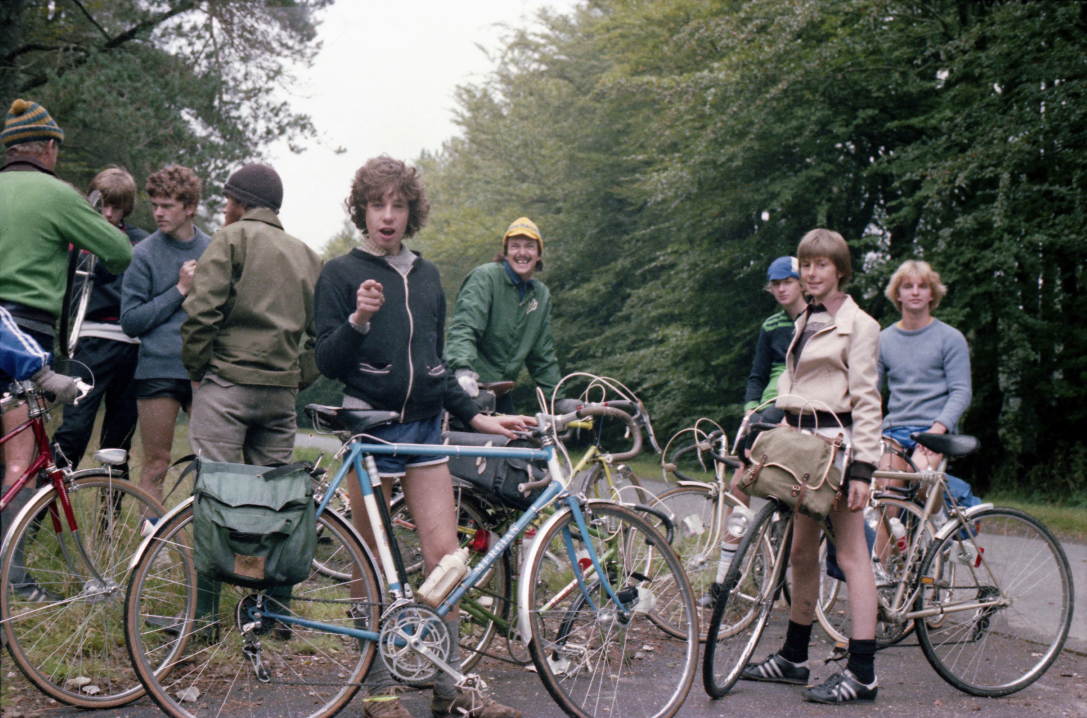The group repairing punctures on Haldon - Mark Moreton, Rob Spence, Nigel Wilson, Antony House and Paul Nunn