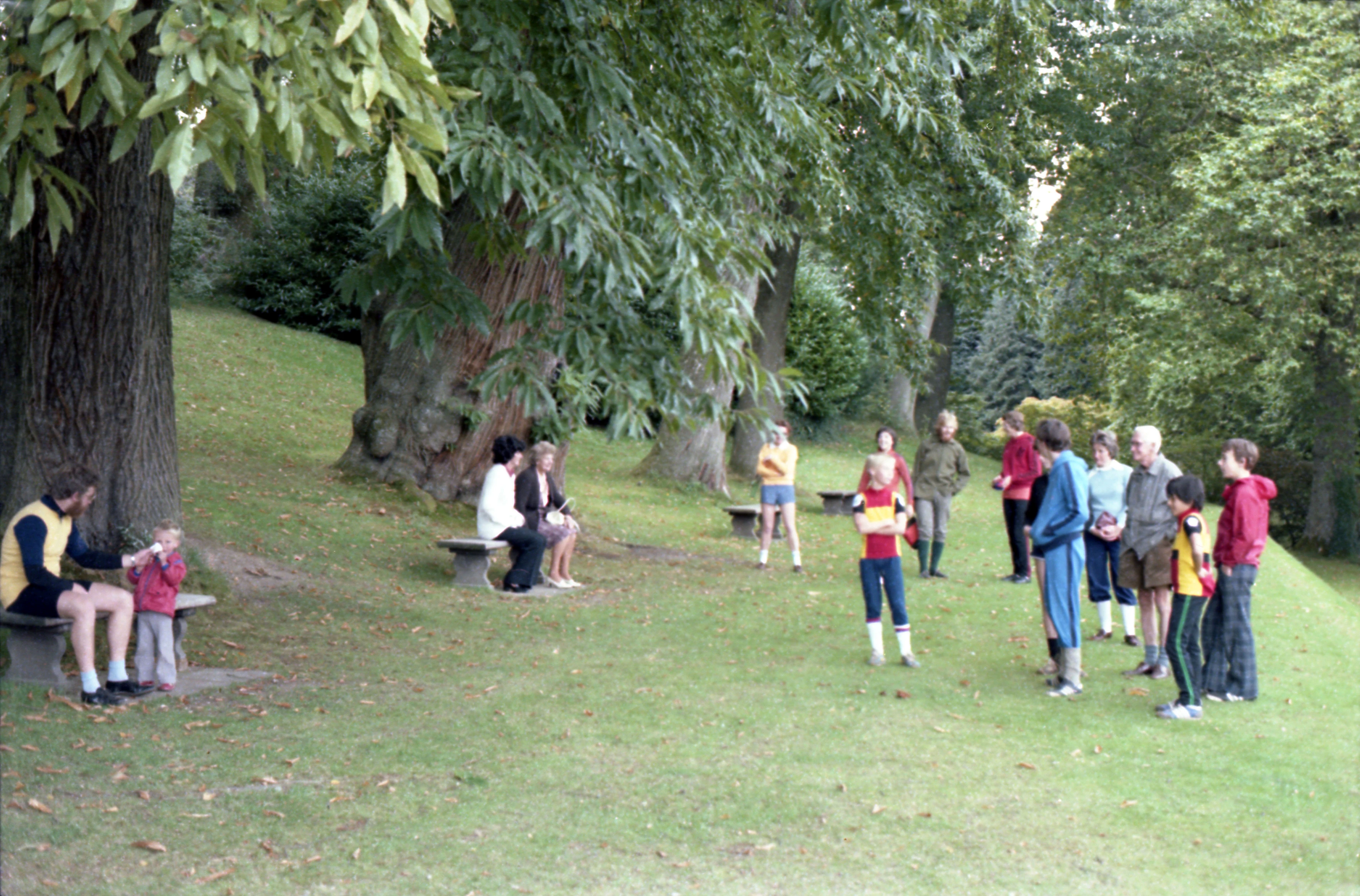 The group in the gardens of Dartington Hall, including new members Matthew Tewson and Richard Reade