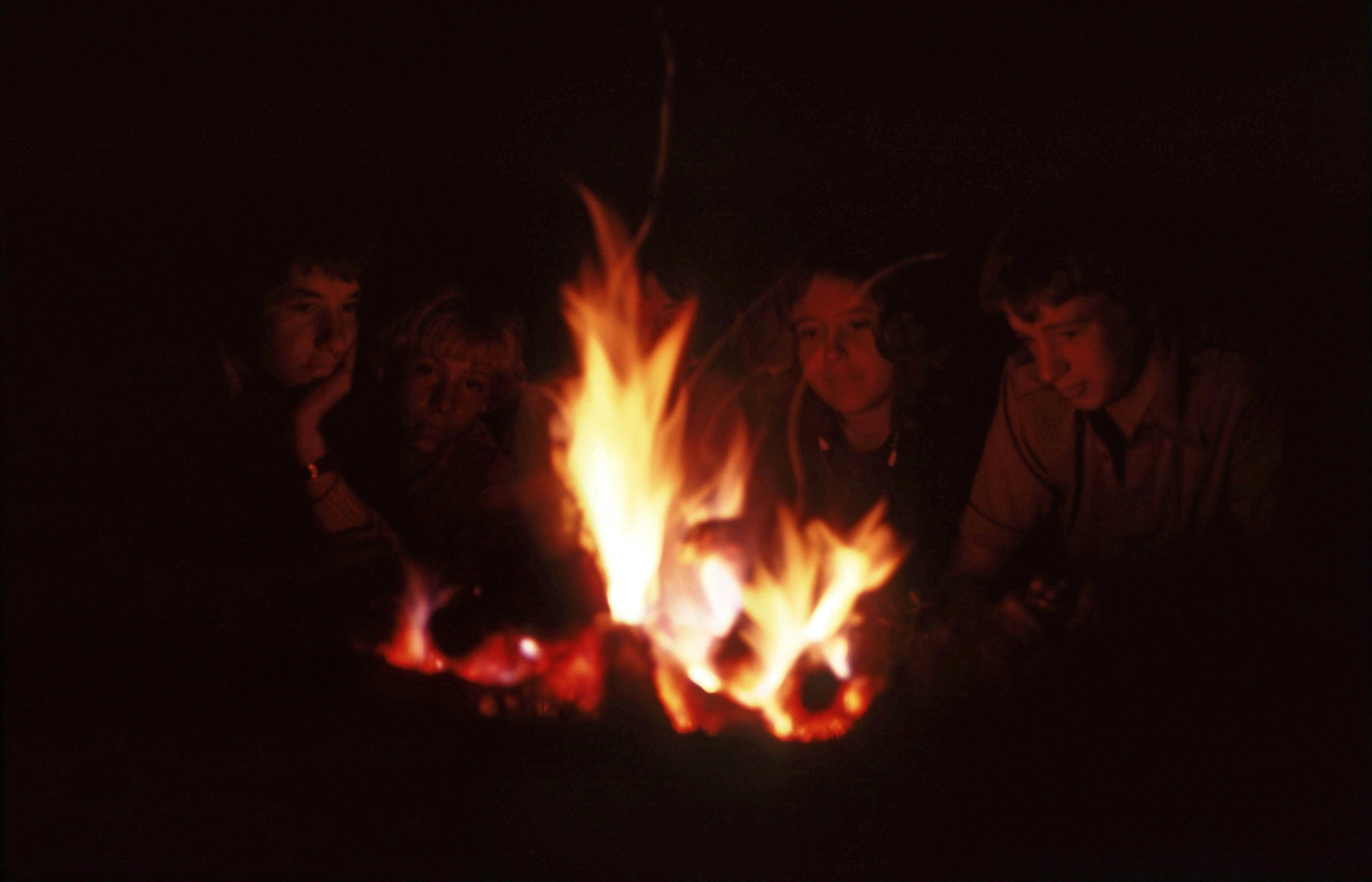Mark, Matthew, Frances, Jackie and Kevin around the camp fire