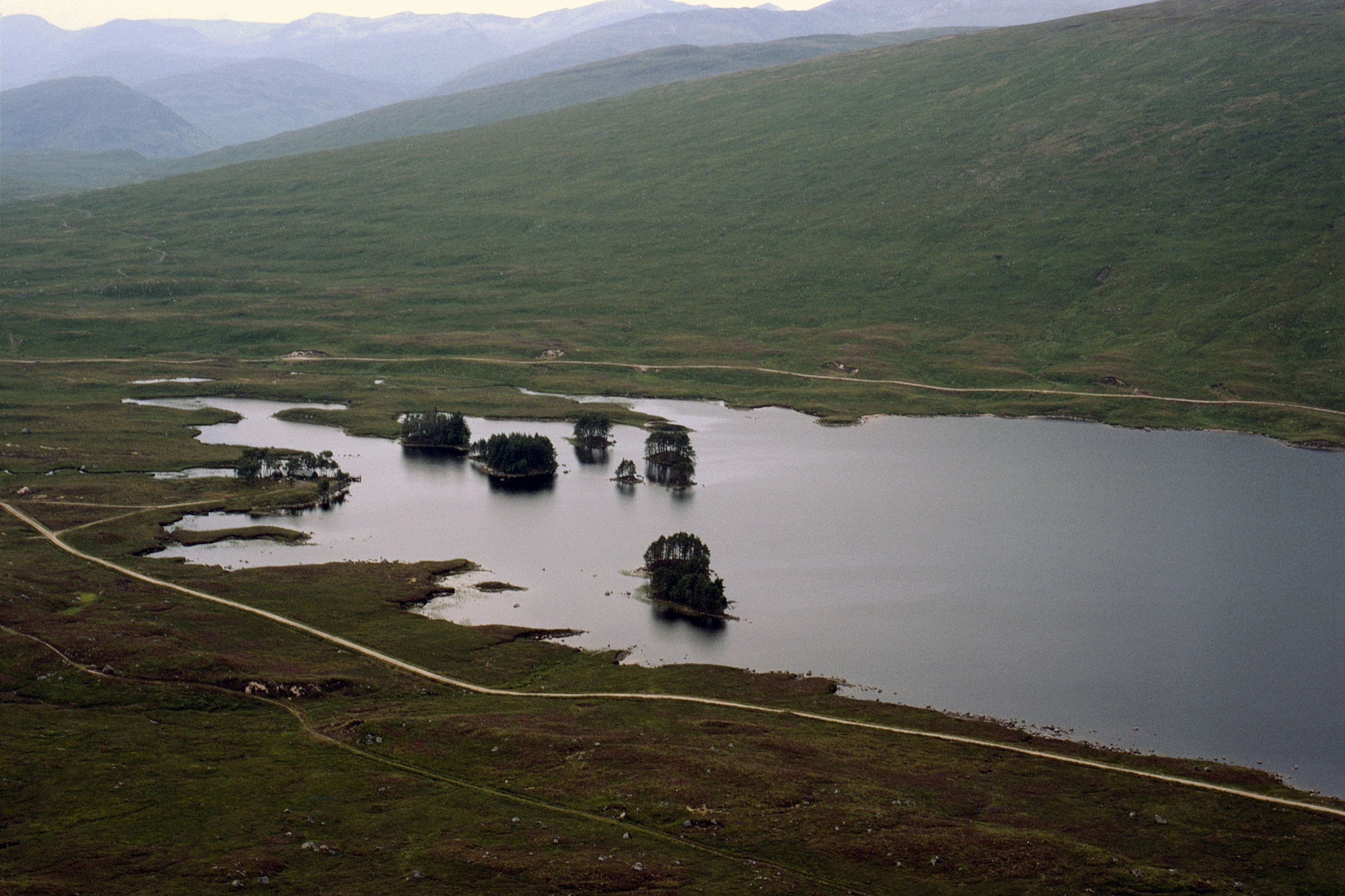The western end of Loch Ossian, showing the location of the youth hostel