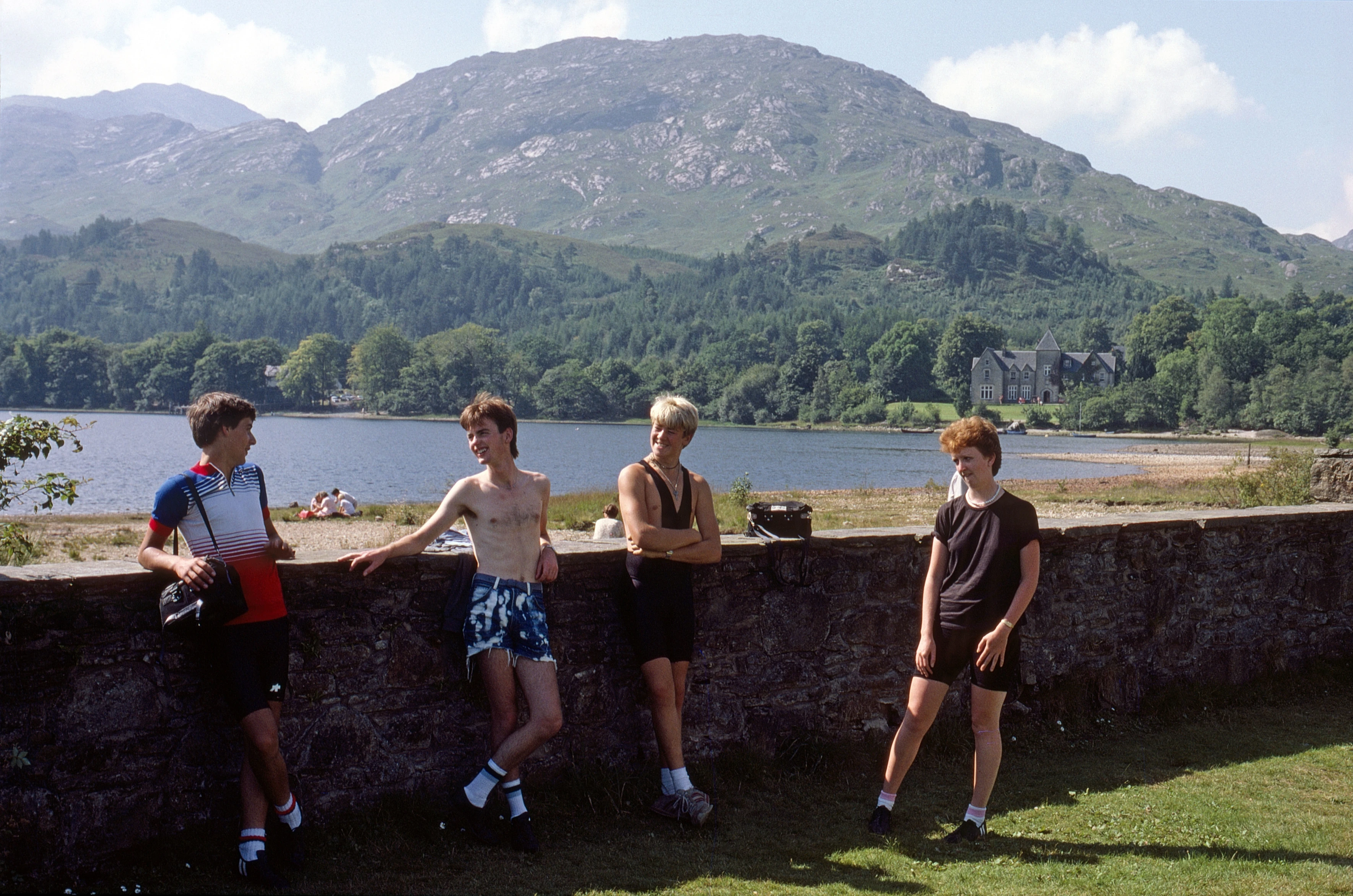 Richard, John, Simon and Julie by Loch Shiel with the Glenfinnan House Hotel behind