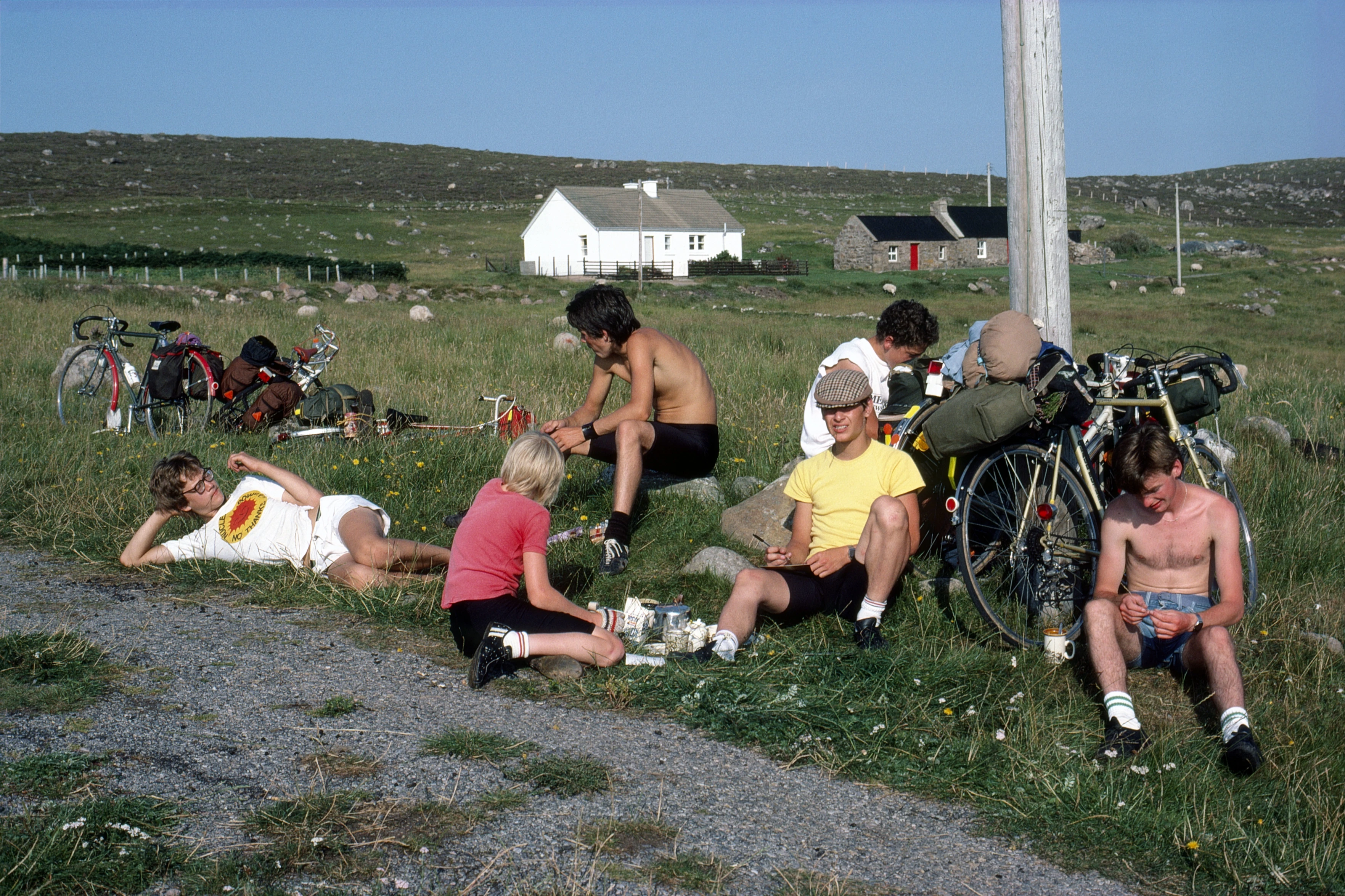 Tea, cakes and postcard-writing at Croft 14, Port Henderson, with Croft 18 behind