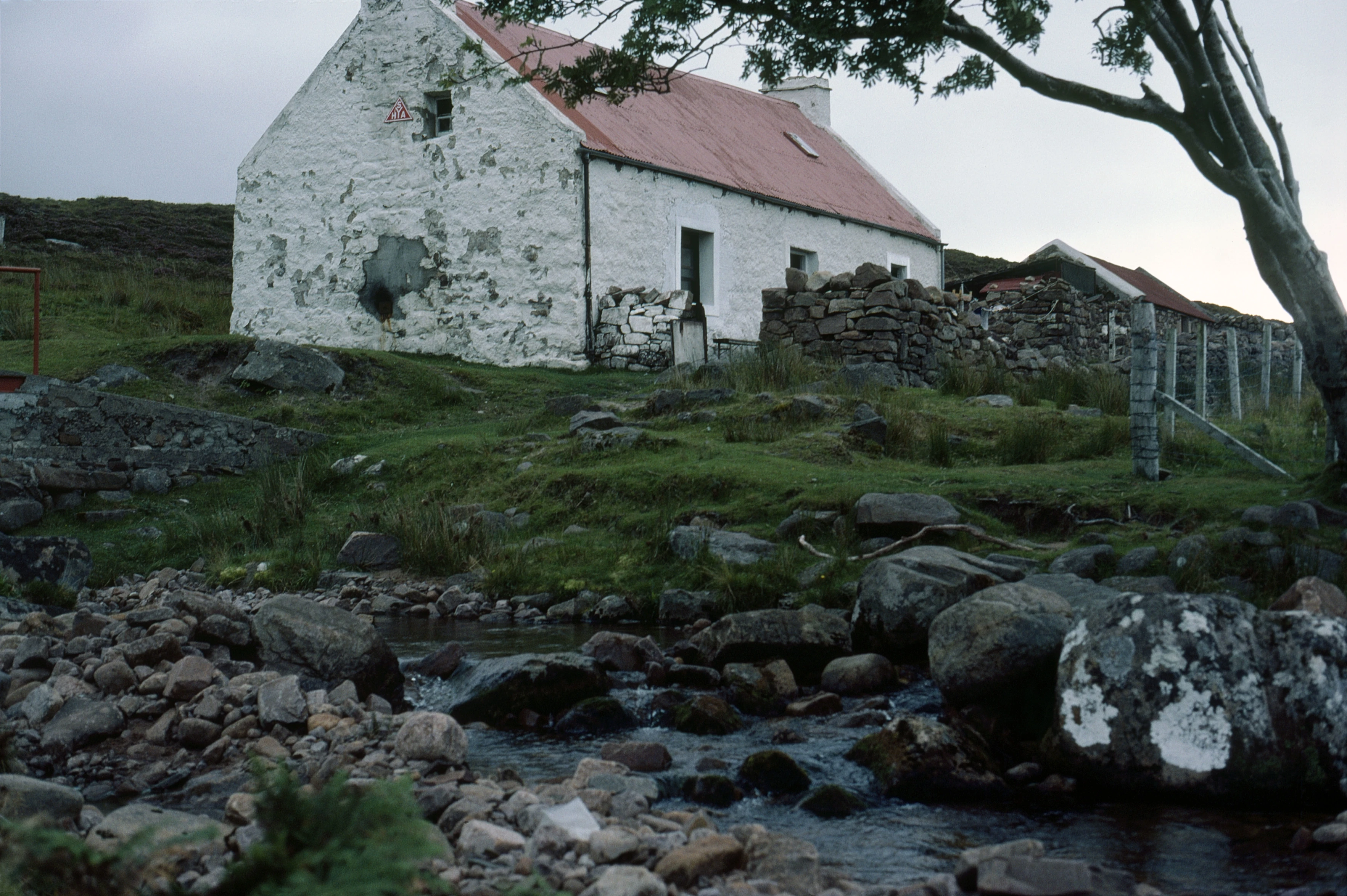 Achininver youth hostel, with the outside toilet hut just visible behind the wall