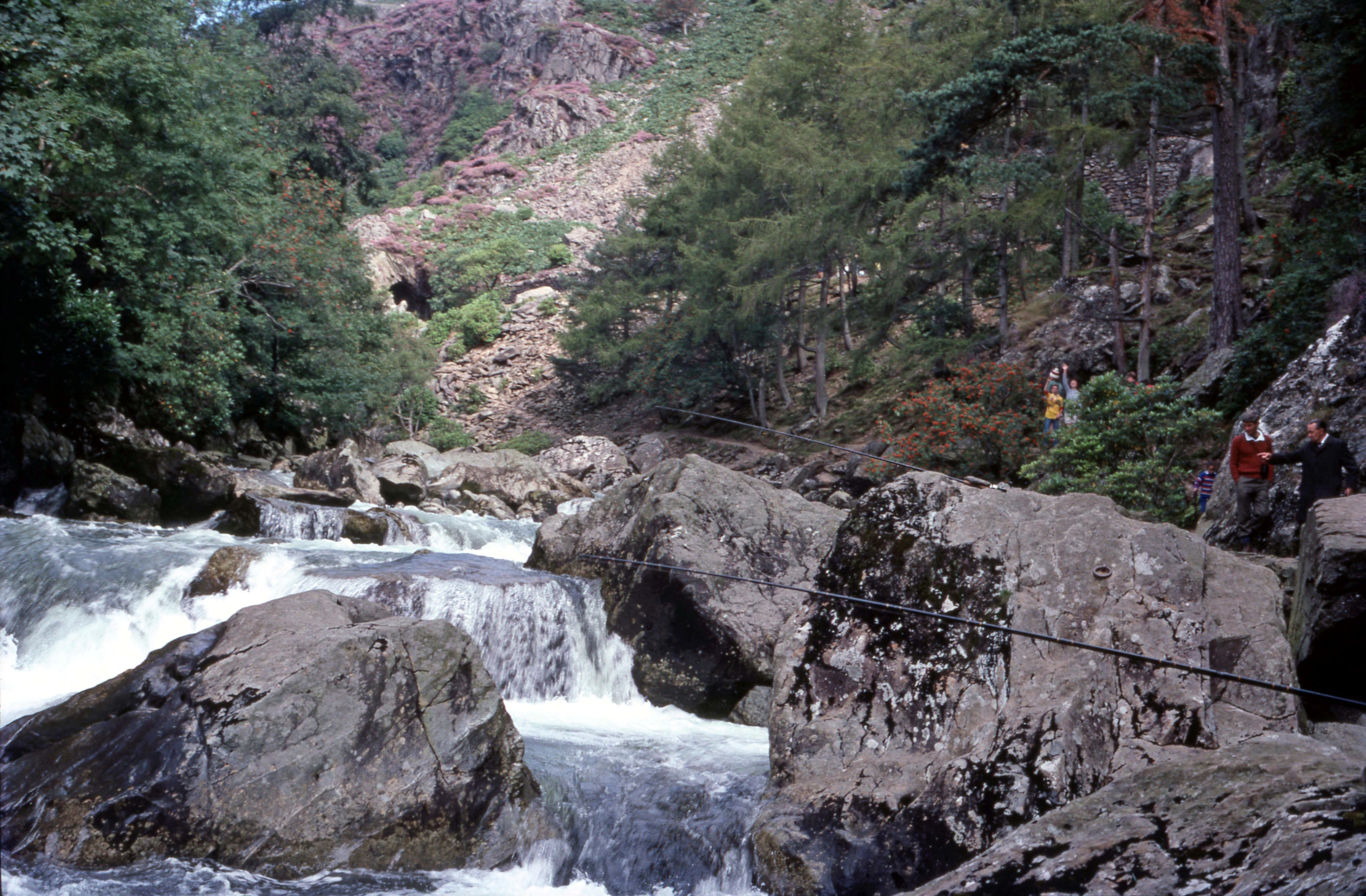Our lunchtime walk upstream from Pont Aberglaslyn, showing tunnel T3 of the now disused West Highland Railway