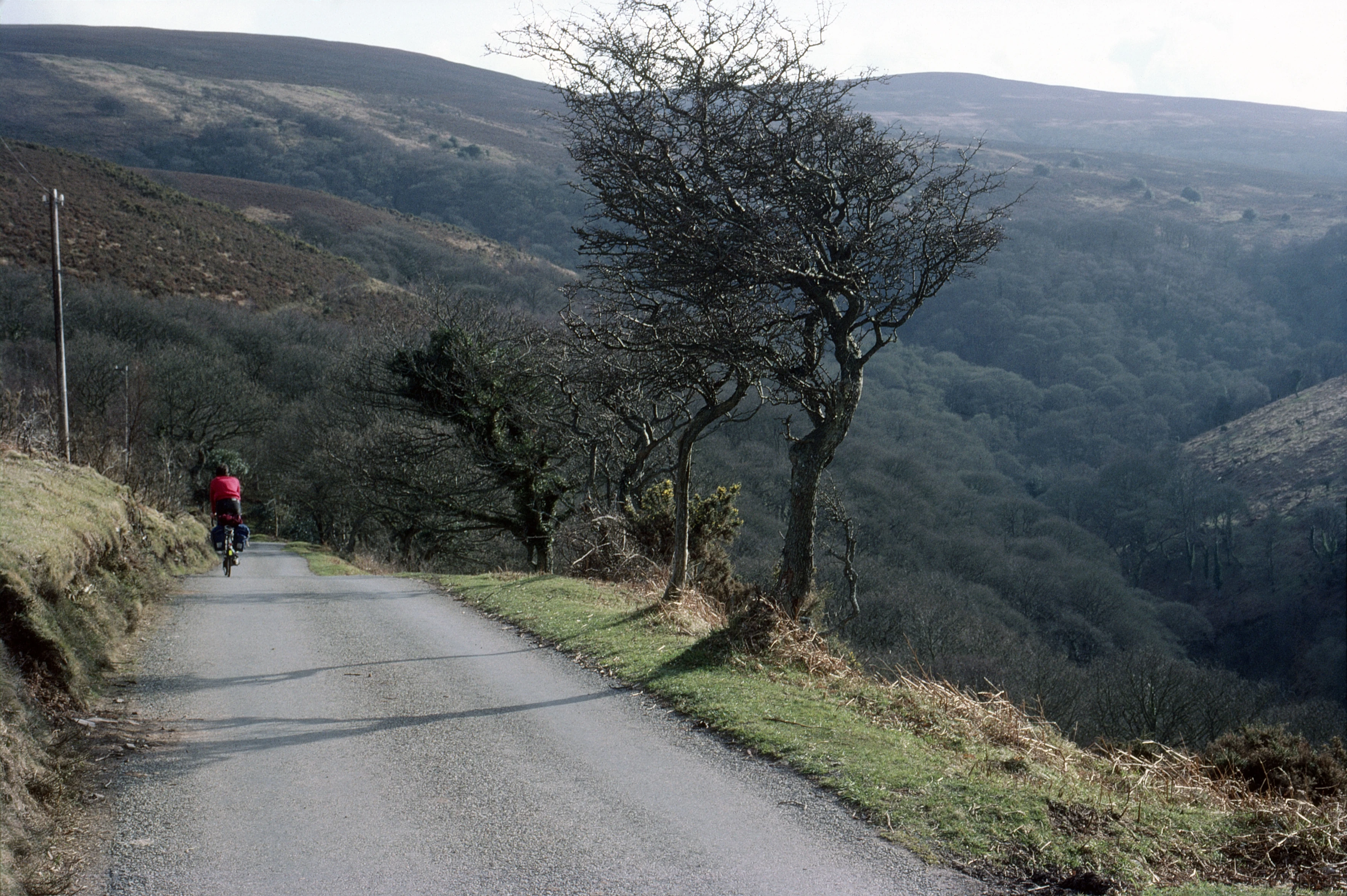 Andrew Billington descends the hill from Webber's Post to Cloutsham on Exmoor