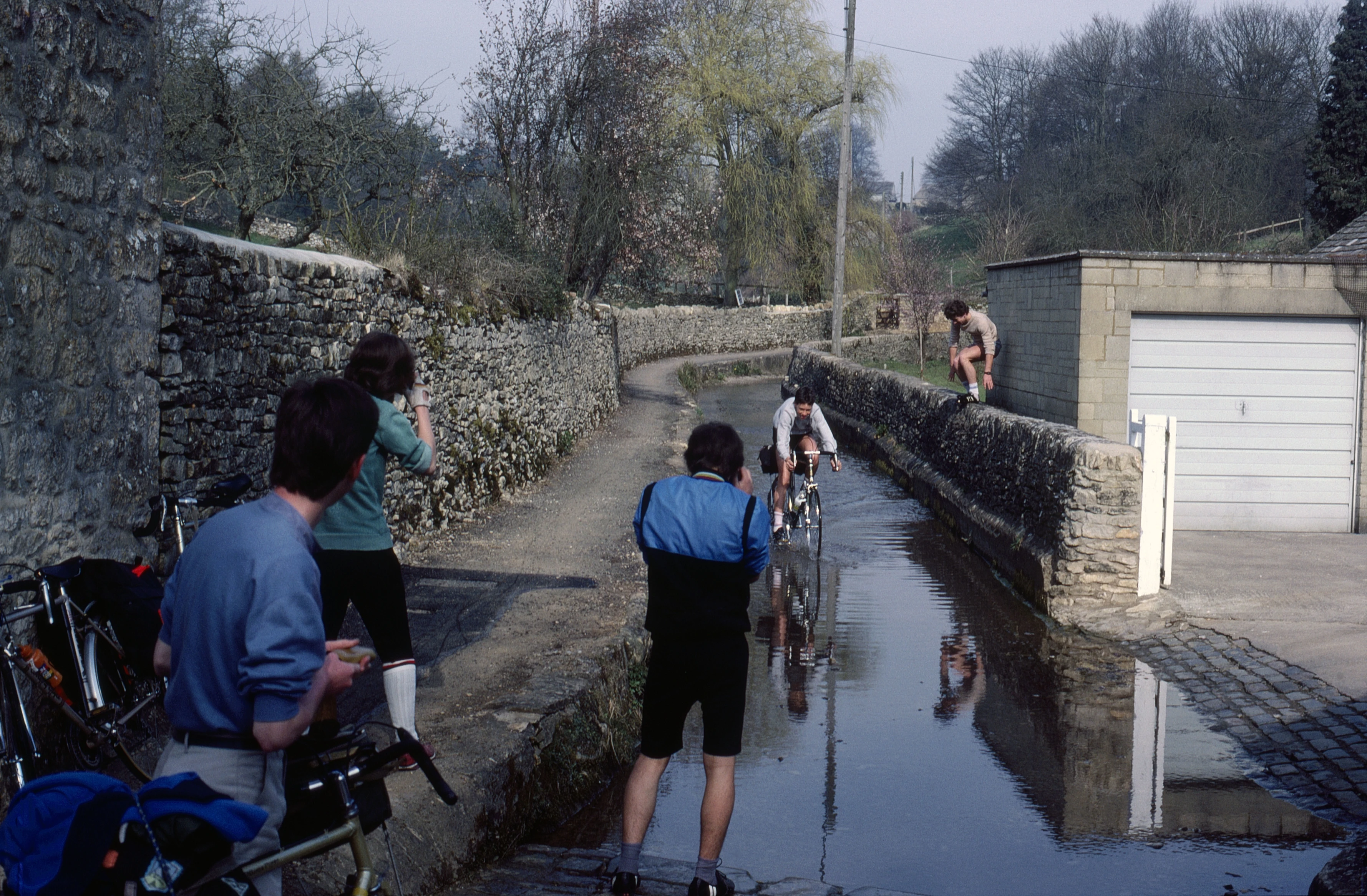 The very long ford at Duntisbourne Abbots proved an irresistible attraction for many in the group